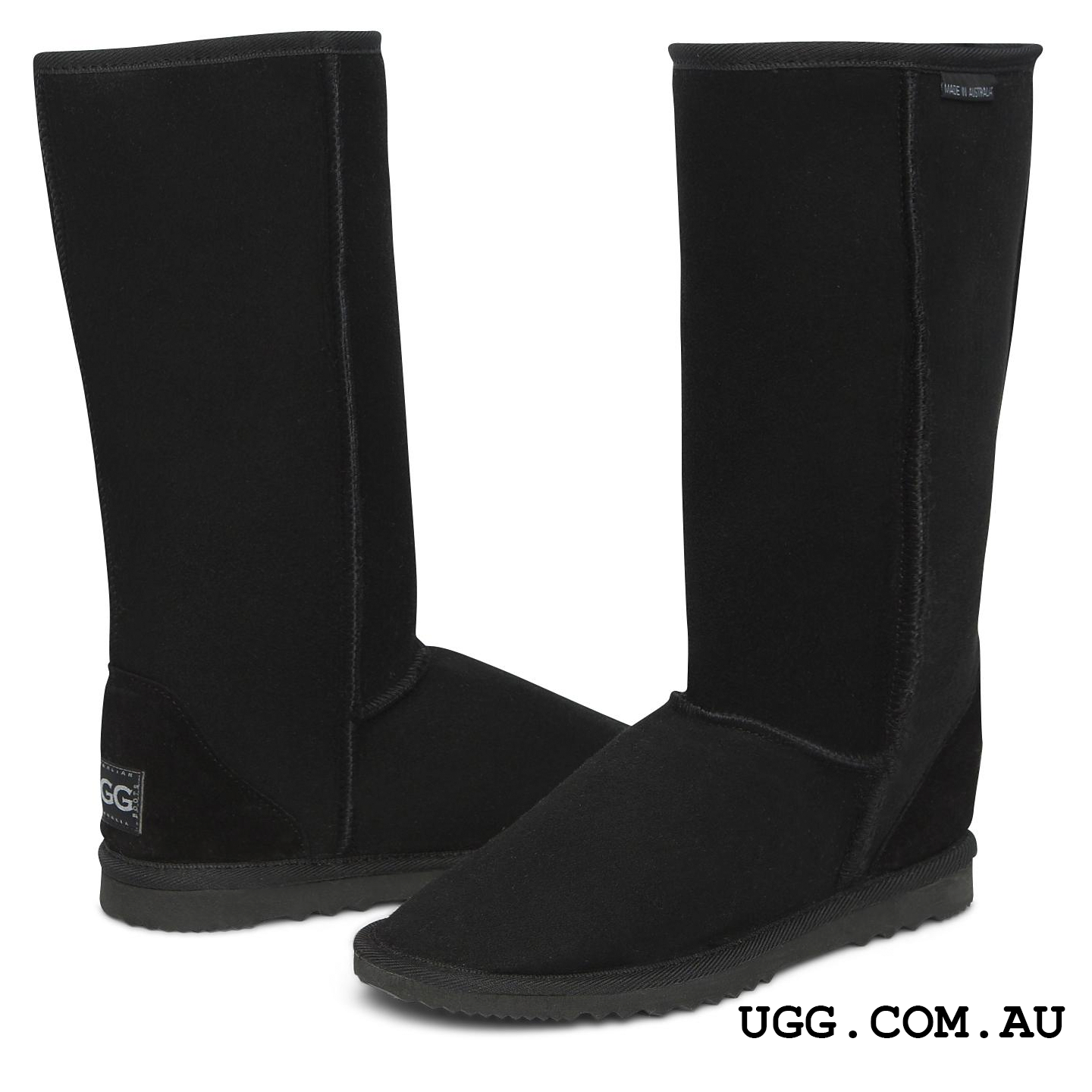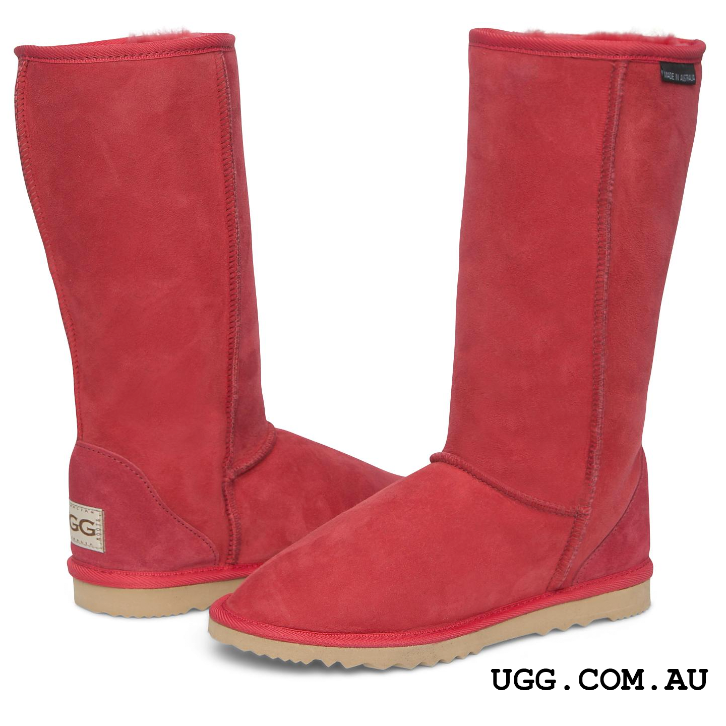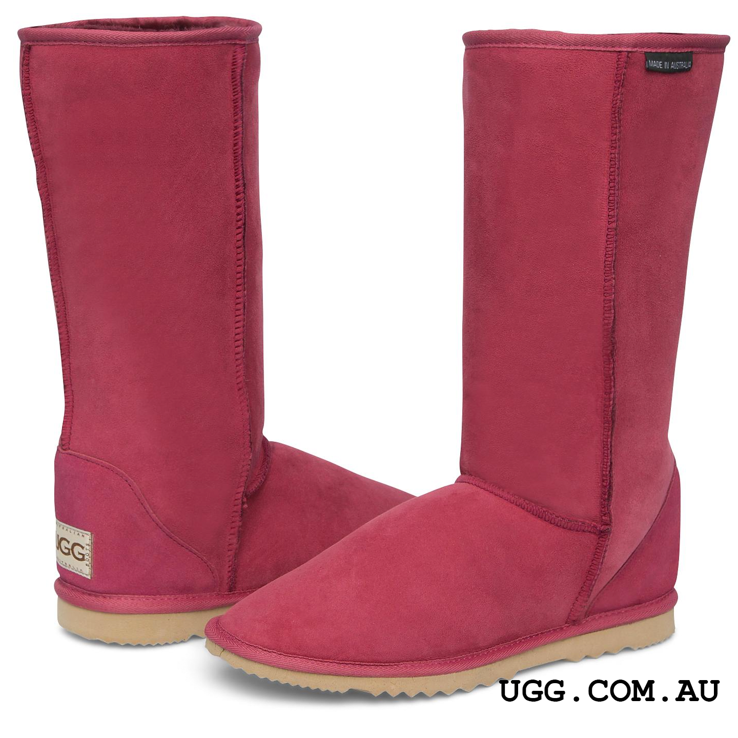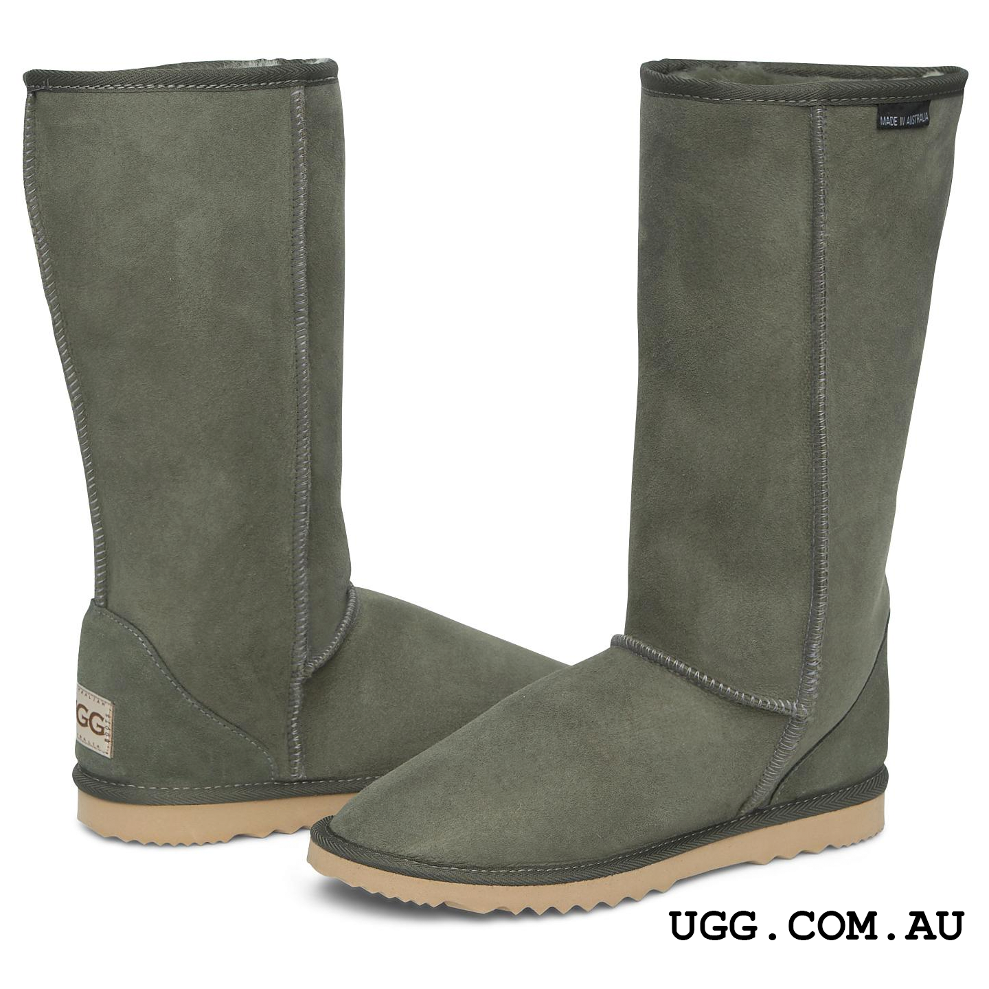 These boot are tall, a whopping 34cm from the ground up, sitting under the knee. A classic all time best seller, they are loved because of their versatility and warmth. Folded over at the top, they make a wonderful fashion statement with a fluff edge. Because they are tall they can be worn as casual boots or a dressy look. Worn underpants or tucked in. The secret to wearing the Classic Tall is to slide then on like socks.