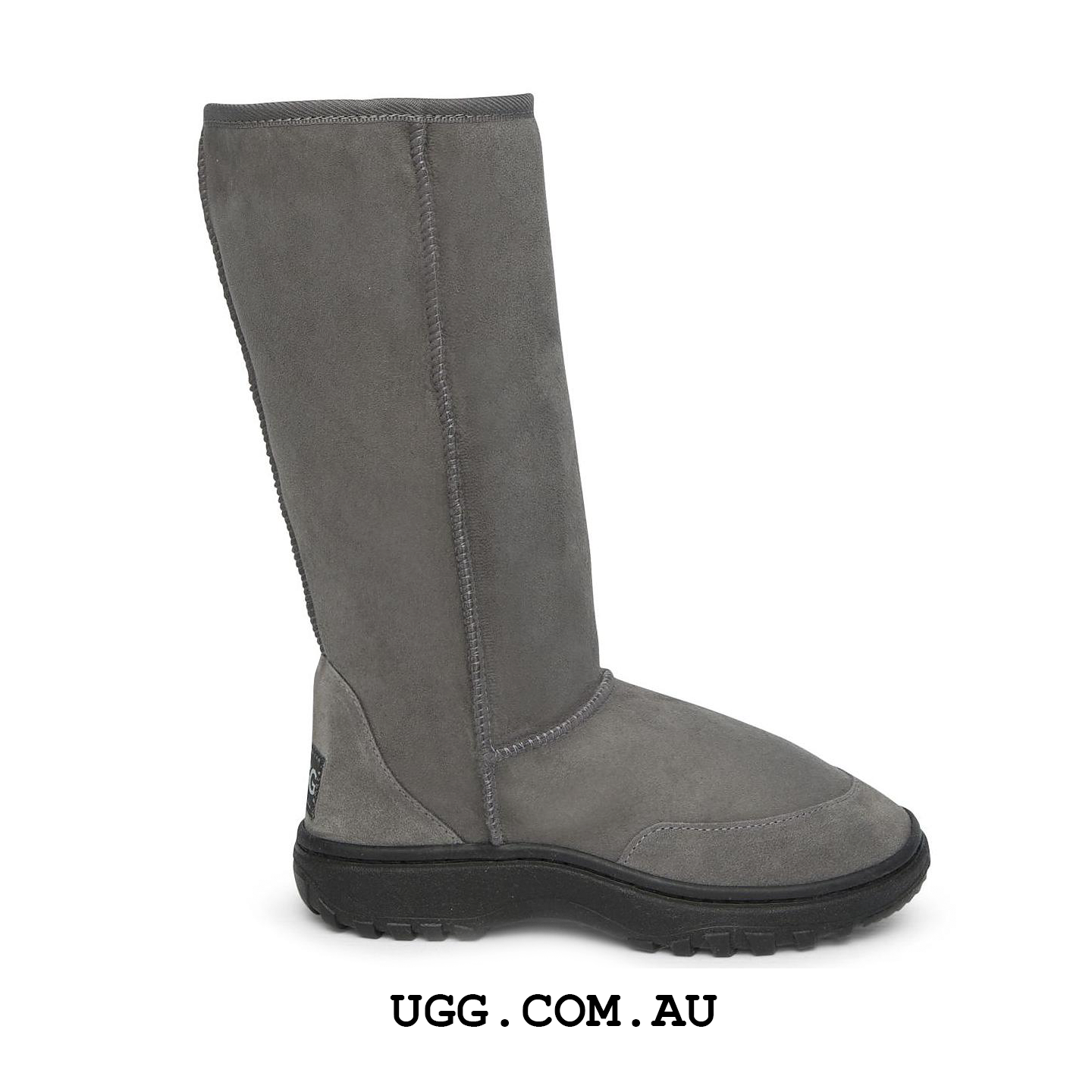 These Hiking boots are tall, a whopping 34cm from the ground up, sitting under the knee. A classic all time best seller, they are loved because of their versatility and warmth. This boot has a more durable sole made from long lasting rubber. Commonly known as the hiking sole, rubber sole or outdoor sole.